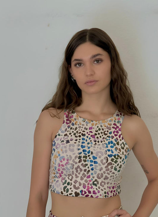 TOP DOBLE VISTA animal print rosa/turquesa